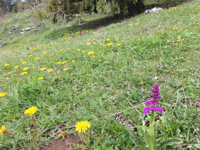 Gesehen haben wir unter anderem: Knabenkraut-Orchideen, Soldanellen, Krokusse, Aurikeln, Primeln und Schlüsselblümchen, Huflattich, Enziane und Hahnenfuss.