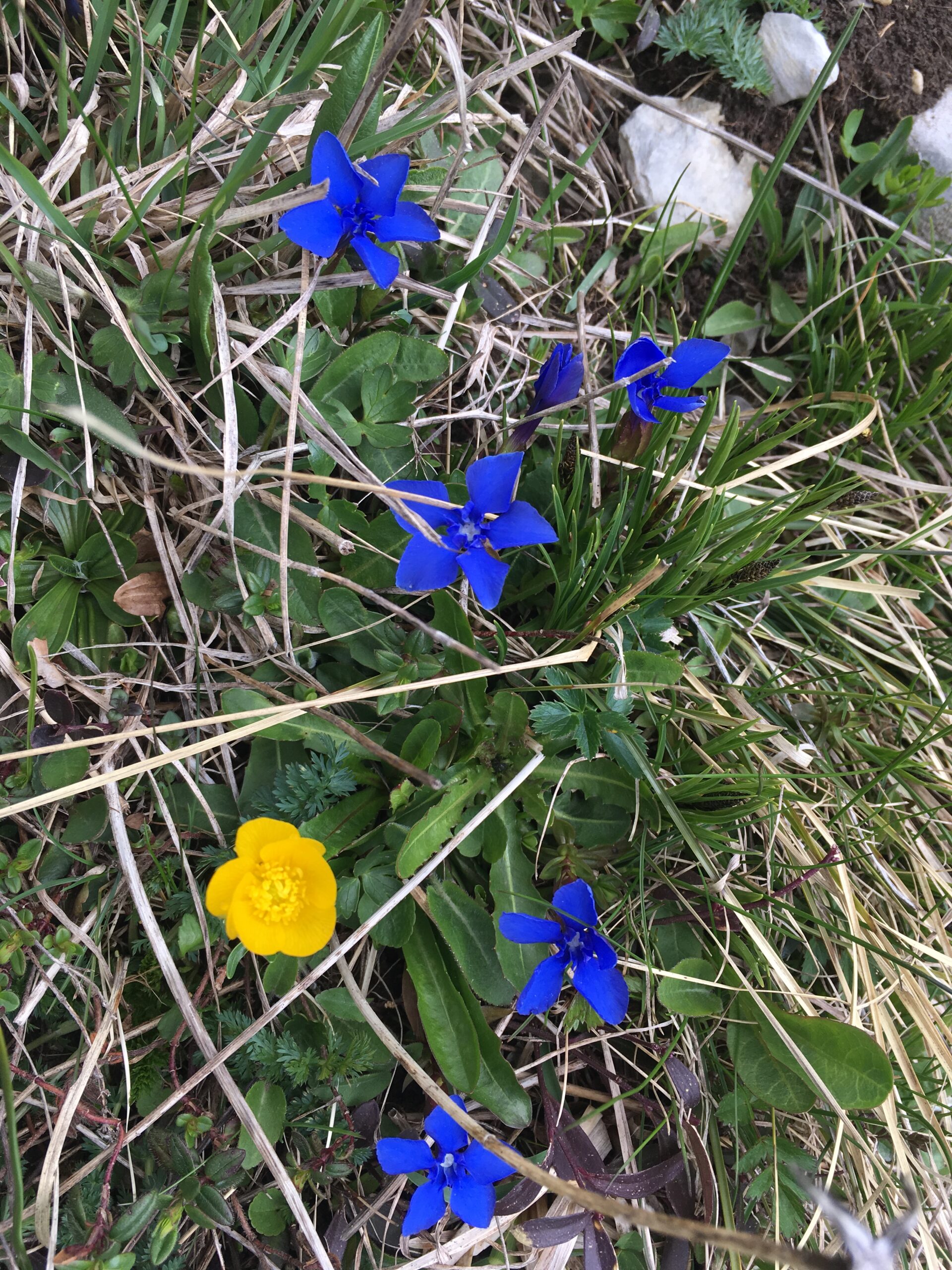 Gesehen haben wir unter anderem: Knabenkraut-Orchideen, Soldanellen, Krokusse, Aurikeln, Primeln und Schlüsselblümchen, Huflattich, Enziane und Hahnenfuss.