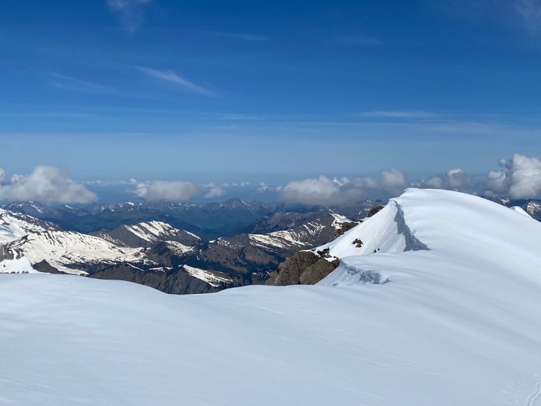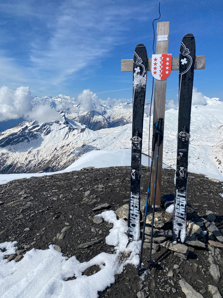 Nur eins muss ich sagen, dieser wunderschöne Ort mit den Matten voller blühender Kuhschellen, der ist im Frühling nicht ganz so einfach zu erreichen. Wir sind um 4.30 morgens losgegangen, damit der Schnee nicht zu weich ist. Die ersten zwei Stunden buckelten wir Tourenski und Skischuhe den Feissenberg hinauf, und kämpften uns in den Wanderschuhen den zum Teil arg verschütteten Bergweg hoch bis zum Wasserfall. Im Sommer ist da nur ein freundliches Tröpfeln, das bei den Wanderern für willkommene Erfrischung sorgt. Aber im Frühling ist diese Passage eine doch recht nasse Rutschpartie. Das letzte Stück bis zur Geltenhütte konnten wir die Ski anziehen, und gemütlich ins Rottal fellen. Alsda warteten einige knackige Lawinenkegel auf uns – nochmals eine ziemliche Anstrengung. Schliesslich gelangten wir an die weisse Flanke, stiegen mit einigen Spitzkehren hoch und schritten dem Grat entlang zügig zum Gipfel. Ein prächtiger Ausblick – der Arpelistock ist immer eine lohnende Bergtour. Da der Abstieg lang und streng ist, mag ich diesen Gipfel lieber als Skitour. Das pure Weiss hier oben, so grell und hell in der kräftigen Maisonne, und dann durch den wunderbar samtig aufsulzenden Schnee hinabkurven ins Rottal, das ist wie Fliegen – nur schöner! Aus diesem intensiven weissen Rausch hinabzutauchen in die Matten voller Kuhschellen – ein unglaublich intensives Sinneserleben. Aber ganz ohne Anstrengung ist solcherlei eben nicht zu haben.