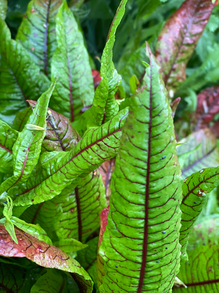 Schauen wir uns also auch die Ampferfamilie etwas genauer an. Küchentechnisch der bekannteste Vertreter ist hier gewiss der Wiesen-Sauerampfer (Rumex acetosa). Ein dankbares und schmackhaftes Kraut! Besonders für Suppen wird es gern verwendet. Man sollte den Wiesen-Sauerampfer vorzugsweise im Frühling ernten. Gegen den Sommer hin nimmt die Säure zu, ähnlich wie bei den Rhabarbern. Und sobald sich die Samen bilden, schmecken die Blätter auch nicht mehr so zart. Aber man kann sie immer noch für Suppen verwenden. Auch die Samen sind selbstverständlich essbar.