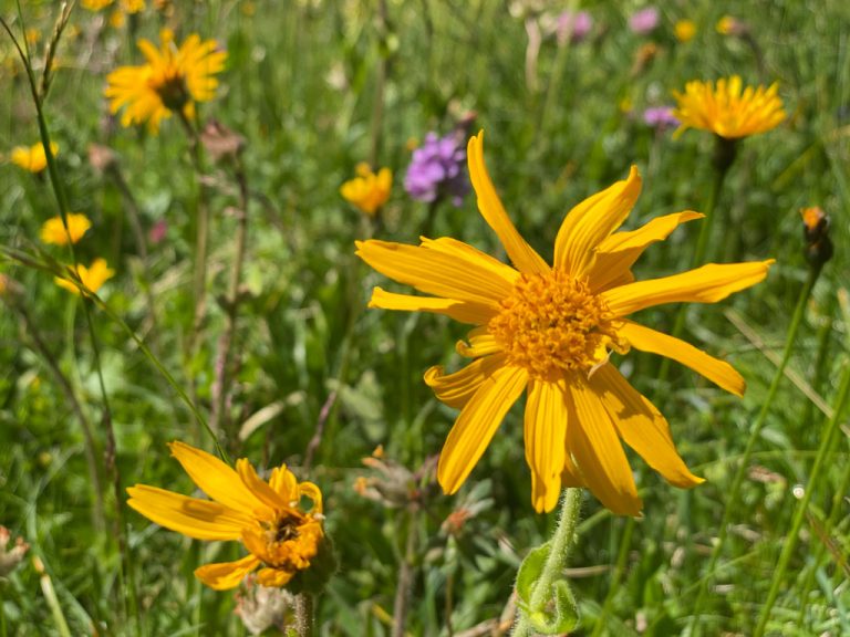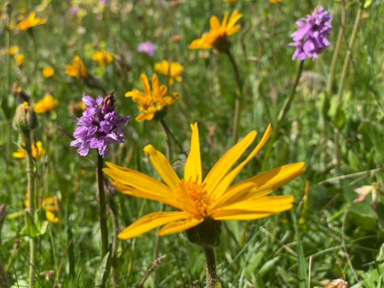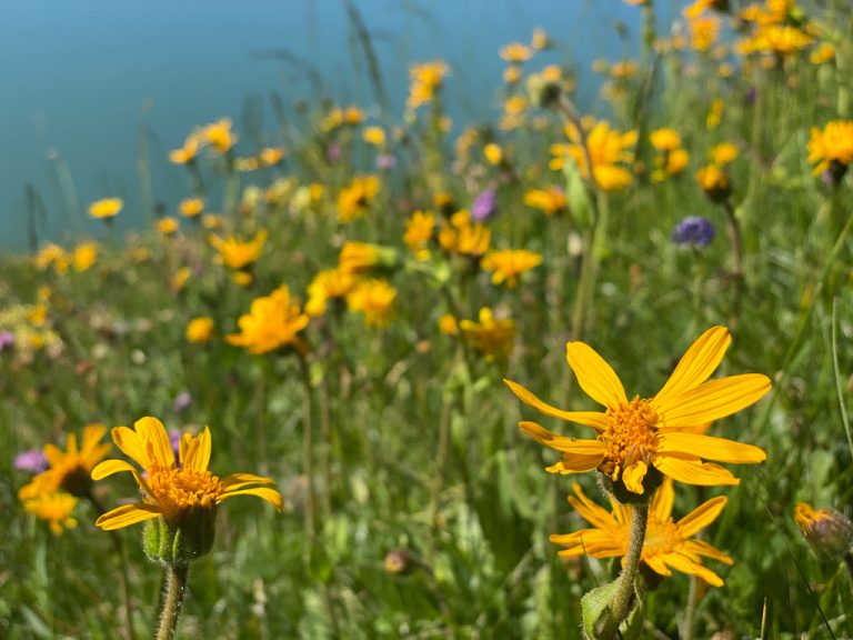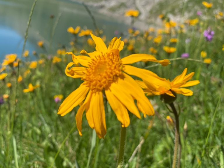 Wie leuchtende Sonnen gehen sie im Sommer über den mageren Bergwiesen auf: die Arnikablüten. Meist wirken sie zerzaust, kaum sind sie aufgegangen. Das liegt an ihren zarten Blütenblättern, die in der Alpenbrise leicht zerknittern. So zerzaust bleiben sie dann wochenlang stehen. In Deutschland sowie in einigen Kantonen der Schweiz sind sie geschützt. Wer Arnika (Arnica montana) für Heilmittel verwenden möchte, sollte sie sowieso besser im Garten anbauen. Sie wachsen an einem sonnigen, humusreichen Standort problemlos. Auch dort, wo sie häufig vorkommen und nicht geschützt sind, ist es nicht gerade nett, sie in grösseren Mengen in der Natur zu pflücken – die anderen Wanderer haben ja auch noch Freude dran, ihre zerknitternden Sonnen zu bewundern.