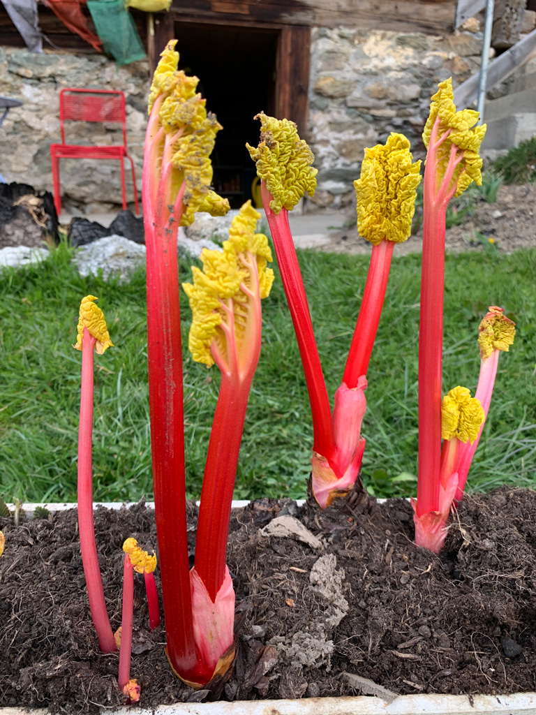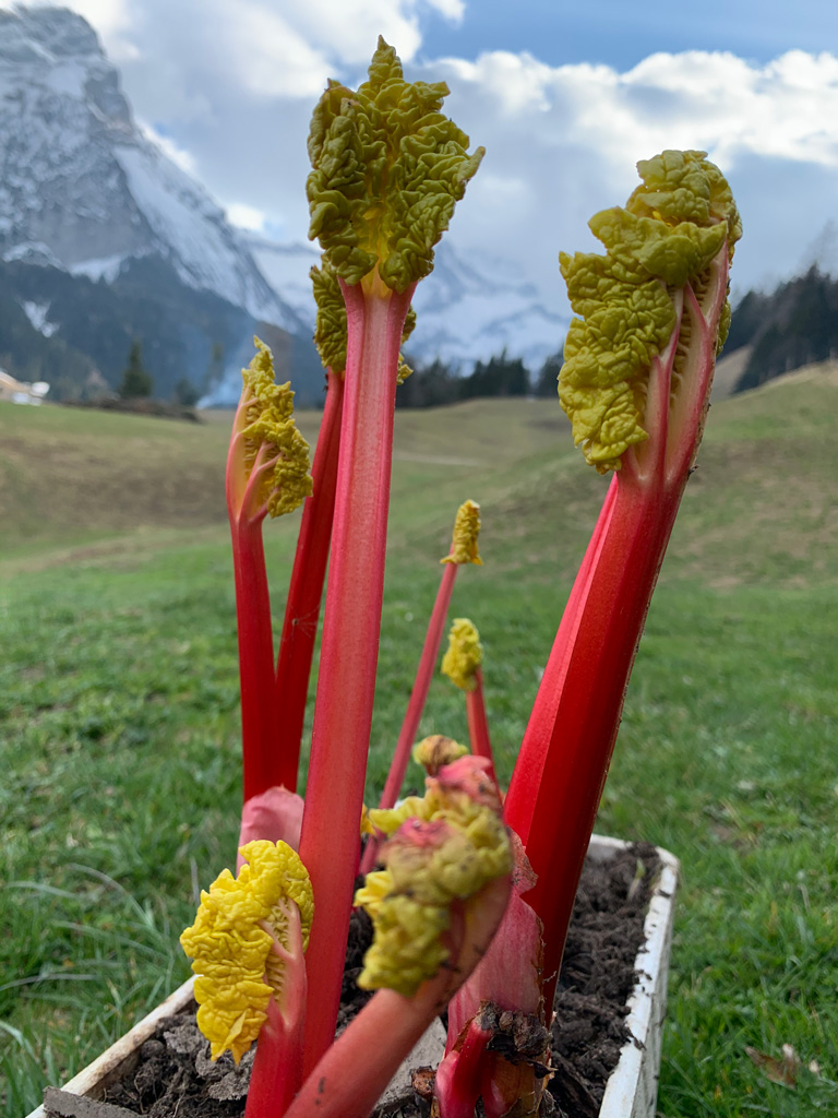 Die Rhabarbern (Rheum rabarbarum) sind übrigens eine uralte Kulturpflanze. Bereits vor über 5000 Jahren wurden sie in chinesischen Kräuterbüchern erwähnt. Sie stammen ursprünglich aus dem Himalaya, und waren im Tibet und in der Mongolei verbreitet, wobei damals nur die Wurzeln verwendet wurden – aus diesen konnten Naturheilmittel gewonnen werden. Vom Himalaya gelangten die Rhabarbern als Heilmittel im 11. Jahrhundert nach China und von dort nach Russland. Im 16. Und 17. Jahrhundert wurden sie dann in Russland erstmals intensiv als Gemüse angebaut. Im 18. Jahrhundert verbreiteten sich die leckeren Stängel in Europa. Vermutlich bedeutet der Name: «Wurzel der Barbaren», und verweist auf ihre Herkunft aus dem damals als wild und gefährlich empfundenen Osten.