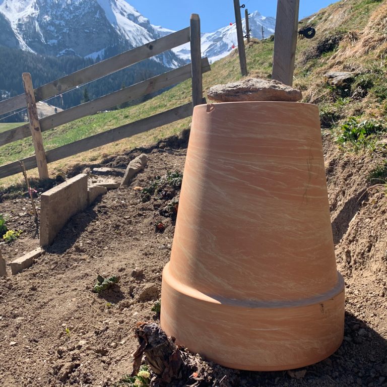 Besonders beliebt sind gebleichte Rhabarbern im angelsächsischen Raum. Dort gibt es spezielle Rhabarbertöpfe aus Ton, die auch äusserst dekorativ aussehen. Wenn ihr keinen solchen Topf zur Hand habt, dann könnt ihr ganz gut auch einfach einen grossen Blumenkübel oder Terracottatopf über die Rhabarberstauden stülpen. Oben auf das Abzugsloch legt ihr einen Teller und einen Stein. Die Stängel werden dann im Dunkeln lang und bleich und zart. Zur Perfektion getrieben wird die Rhabarber-Bleicherei im englischen Yorkshire. Mitten im Winter werden dort die Rhabarberwurzeln ausgegraben und in komplett finstere, aber beheizte Hallen gebracht. Geerntet werden die langen, zarten Stiele bei Kerzenlicht, damit ja kein Sonnenstrahl sie ruiniert. Diese «Yorkshire forced Rhubarbs» gelten als besondere Delikatesse.