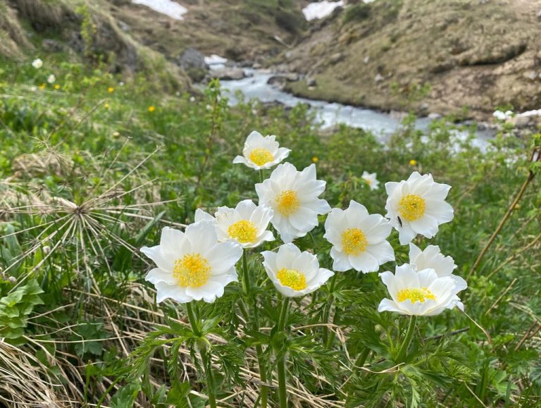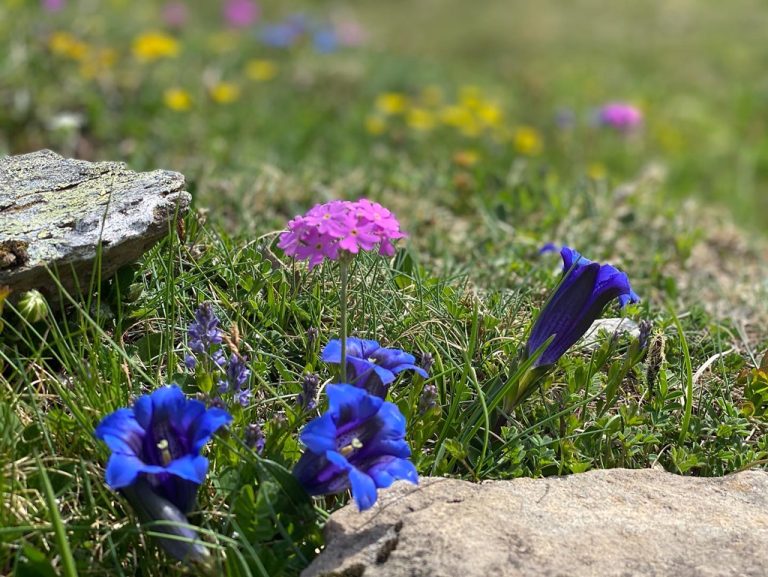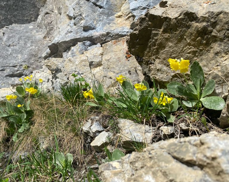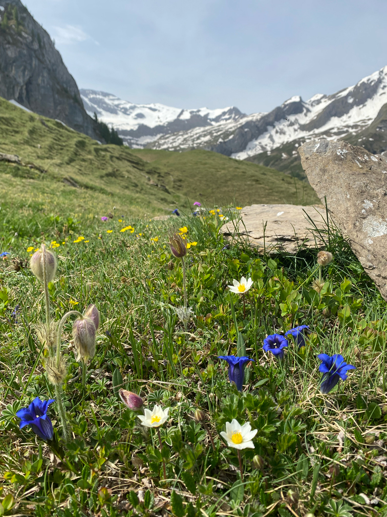 Die Eisheiligen sind diesen Frühling definitv ausgeblieben – auch bei uns in Gstaad und weiter oben. So blühten bei der Geltenhütte heuer schon um den 20. Mai herum tausende von tiefblauen Glockenenzianen, grellbunt flankiert von den Aurikeln (Flüeblüemli) und den pinkigen Mehlprimeln. Sogar die polsterbildenden Silberwurze zeigten zu diesem Datum schon ihre Blüten, sowie die Kugelblumen, diverse Anemonenarten, Gletscherhahnenfuss, Läusekraut, Alpenfettblatt (Pinguicula), Seidelbast und viele viele mehr.